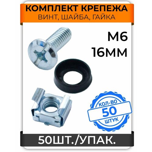 Комплект крепежа TWIST для 19" шкафов и стоек (винт М6х16, гайка, шайба), 50 шт./упак.