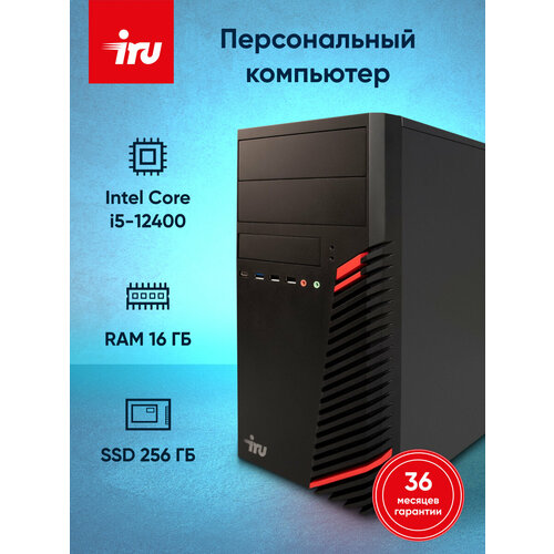 Компьютер IRU Home 310H6SM, Intel Core i5 12400, DDR4 16ГБ, SSD 256ГБ, Intel UHD Graphics 730, Free DOS, (1901043)