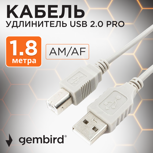 Удлинитель Gembird USB - USB (CC-USB2-AMAF-6), 1.8 м, серый
