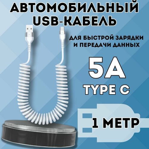 Автомобильный витой кабель USB - TYPE C. Зарядка для телефона в машину 1м. Белый.