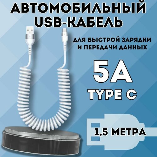 Автомобильный витой кабель USB - TYPE C. Зарядка для телефона в машину 1.5м. Белый.