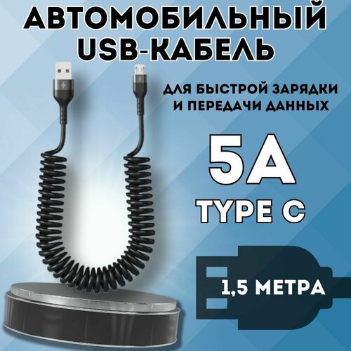 Автомобильный витой кабель USB - TYPE C. Зарядка для телефона в машину 1.5м. Черный.