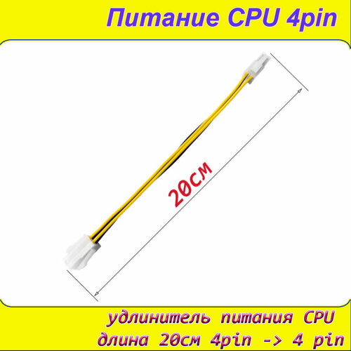 Длина кабеля удлинителя 8pin ATX питания процессора 20 см, что позволяет легко подключить его к блоку питания, даже если стандартный кабель не достает до него.