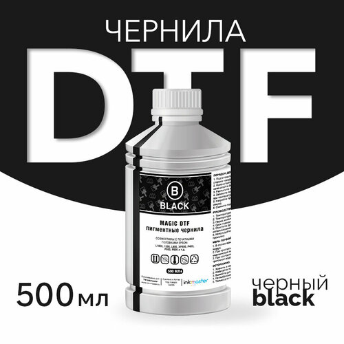 Чернила текстильные пигментные DTF, для принтеров Epson DX5, DX7, TFP, i3200/4720, для печати на ткани, (Black) 500мл, Inkmaster