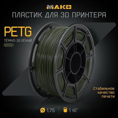 Пластик для 3D печати PETG мако 1.75 "Тёмно-зелёный", 1 кг