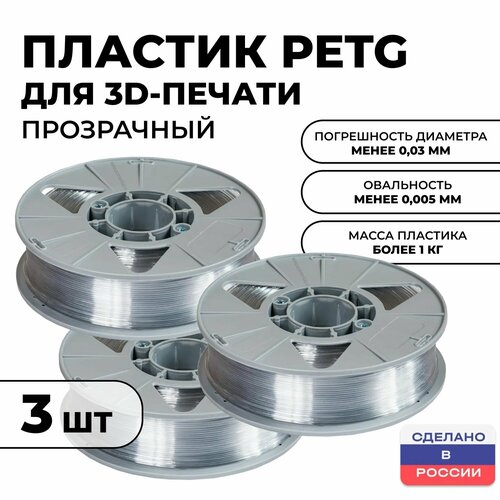 Пластик для 3D принтера PETG ИКЦ, филамент для 3Д печати, 3 катушки, 1,75 мм, 3 кг, прозрачный