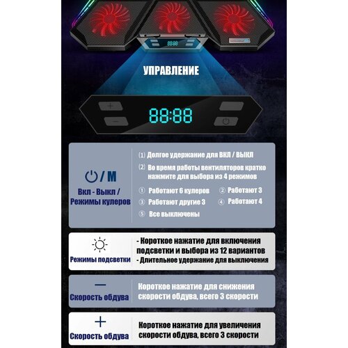 Подставка для ноутбука до 17" с охлаждением 6 вентиляторов RGB