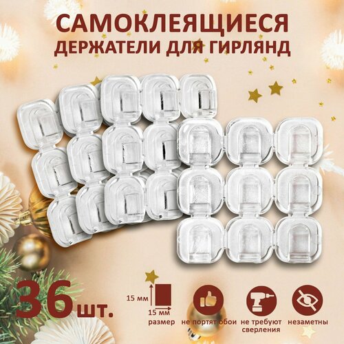 Держатель самоклеящийся для тонких проводов и гирлянд, 15х15 мм, 36 шт.