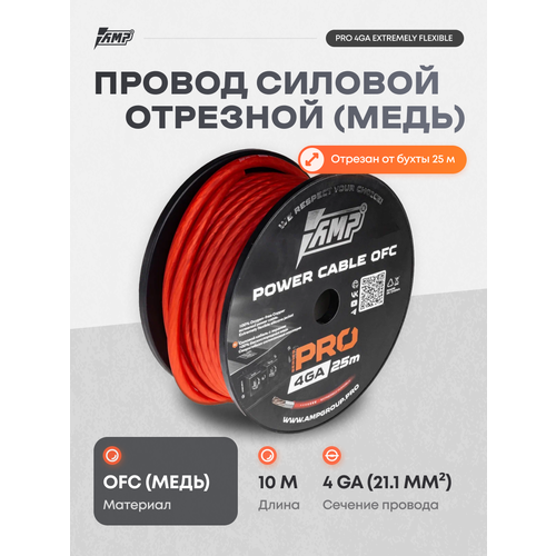 Провод силовой AMP PRO 4Ga OFC Extremely flexible Красный медь 100% 10 метров