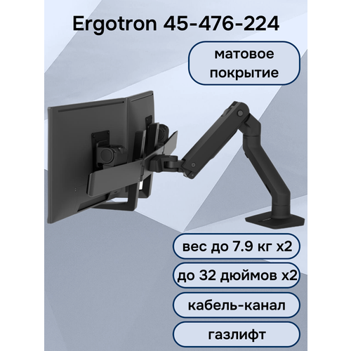 Настольный кронштейн для двух мониторов Ergotron 45-476-224 HX Desk Mount Dual Arm, до 32" до 7.9 кг, черный матовый