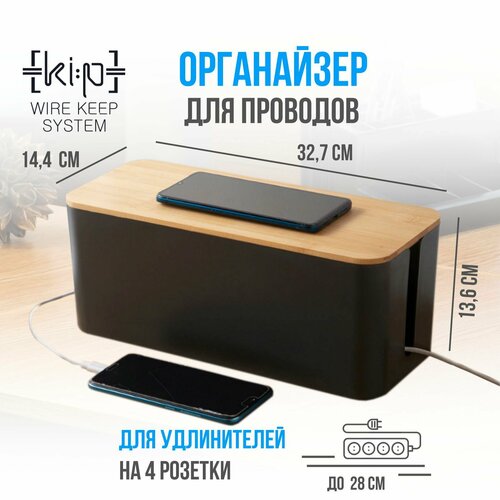 Короб органайзер для проводов, средний (32х13,5х13, бамбуковая крышка, контейнер для маскировки сетевых кабелей