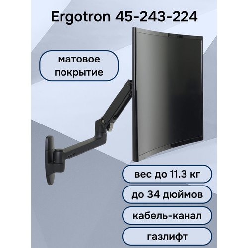 Кронштейн для монитора на стену Ergotron 45-243-224 LX Desk Monitor Arm, до 34" до 11.3 кг, черный матовый