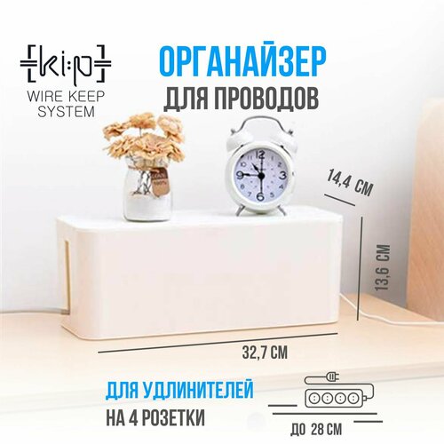 Коробка, органайзер для проводов, средний (32х13,5х13), короб для маскировки сетевых кабелей и шнуров для зарядки