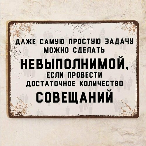 Прикольная табличка Достаточной количество совещаний для офиса , смешной подарок коллеге , металл, 20х30см.