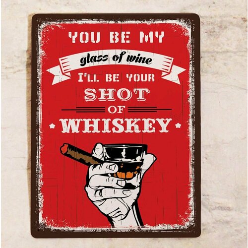Табличка Стакан виски для декора бара на стену, прикольный подарок мужчине на новый год, металл, 20х30см.