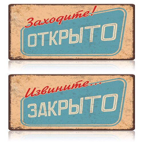 Двухсторонняя табличка Открыто / Закрыто, на дверь, вход в шоу-рум, металл, 15х30 см