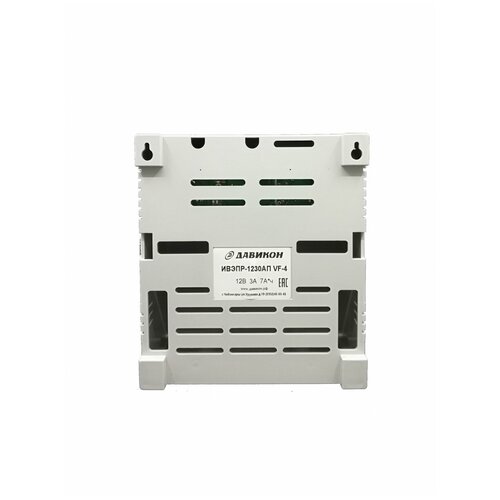 белыйДавикон ИВЭП-1230G, источник вторичного электропитания стабилизированный уличного исполнения для профессионального монтажа. Предназначен для обеспечения электропитания потребителей при номинальном напряжением 12B постоянного тока 3А (максимальный 3,5