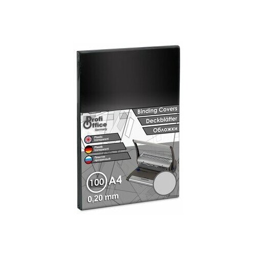 Обложки для переплета пластиковые ProfiOffice прозрачный А4, 180мкм, 100 штук в упаковке