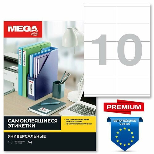 Этикетки самоклеящиеся Promega Label Premium 105х57 мм 10 штук на листе белые (100 листов в упаковке)