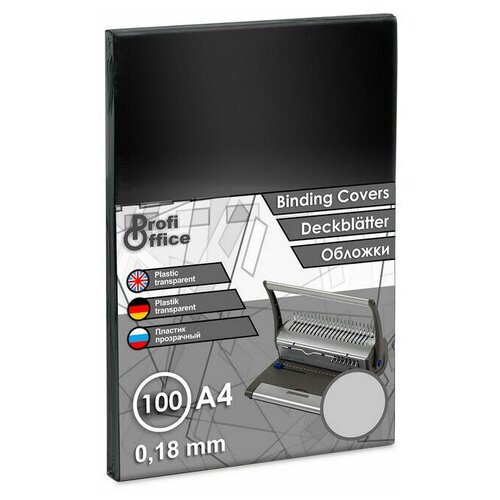 Обложки для переплета пластиковые ProfiOffice прозрачный А4, 180мкм, 100 штук в упаковке