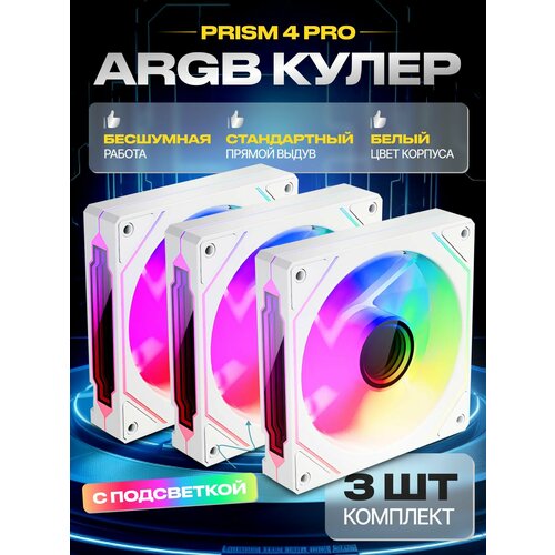 3шт. Выдув Прямой Корпусный вентилятор ARGB 120 мм PRISM 4PRO Белый Прямой