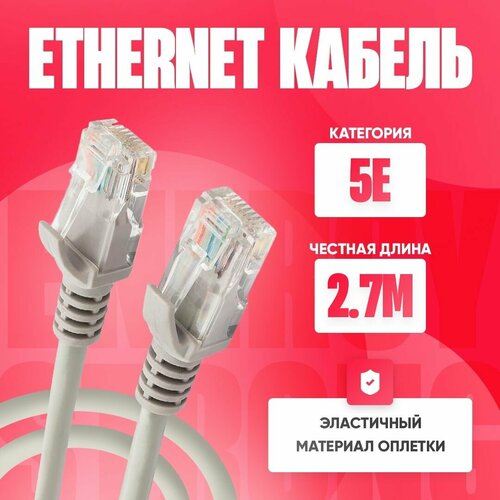 Кабель для интернета патч-корд 5E 3 метра медный в гибкой оплётке