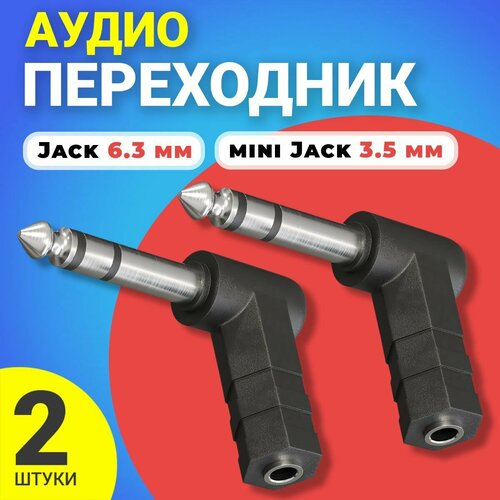 Аудио переходник адаптер угловой GSMIN Maple2 Jack 6.3 мм (M) - mini Jack 3.5 мм (F) джек (Черный)