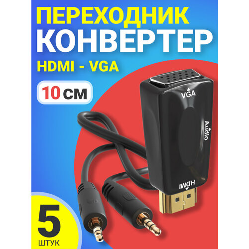 Адаптер переходник с конвертером GSMIN A21 HDMI - VGA + Audio, 5шт (Черный)