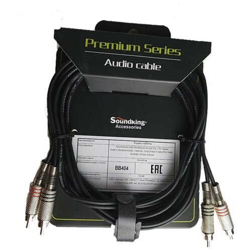 Профессиональный акустический кабель с коннекторами 2хRCA - 2хRCA, длина 3м, Soundking