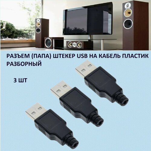 Разъем USB 2.0 (А) штекер разборный на кабель под пайку 3шт