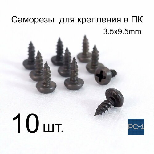 PC-1 Саморезы для корпуса ПК 3.5x9.5 для крепления стоек, кронштейнов для видеокарты, комплектующих, к пластику или металлу до 0,9 мм.