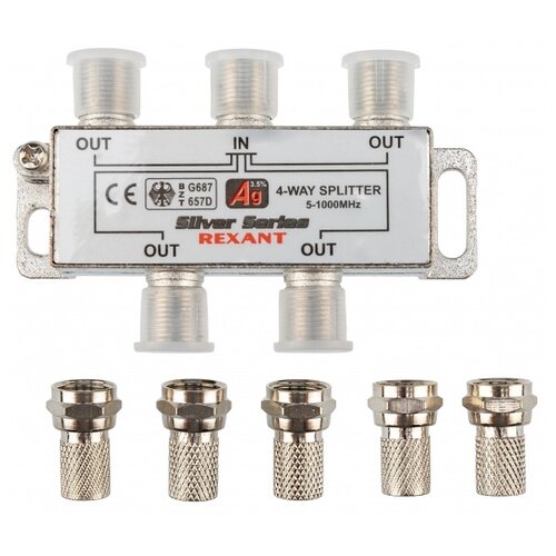 REXANT делитель ТВ х 4 + 5шт. F BOX 5-1000 МГц Silver 05-6103