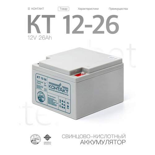 Свинцово-кислотный аккумулятор контакт КТ 12-26 (12 В, 26 Ач)