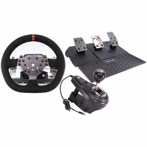 черный, белыйИгровой руль Artplays V-1600 Pro Force Feedback диаметром 28 см не скользит в руках благодаря специальной кожаной оплетке. Модель совместима с Windows, Playstation, Xbox, MacOS, что позволяет подключать приспособление к разным внешним носителям. В наборе идет кабель длиной 3 м, который не стесняет свободу движений. Изделие с собственным программным обеспечением надежно крепится на столе при помощи струбцины и присосок. Можно использовать два варианта работы — автомат или ручная КПП, задействовать 18 программируемых клавиш для различных типов езды, три педали и четыре подрулевых переключателя. Доступно шесть скоростей. Вес — 6,5 кг.