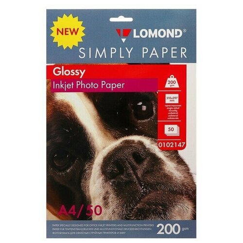 Фотобумага для струйной печати А4, 50 листов LOMOND, глянцевая, односторонняя, блок 200 г/м2 (0102147), 1 набор