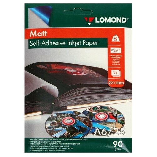 Фотобумага самоклеящаяся для струйной печати А6 (10х15) LOMOND, 90 г/м2, матовая, 25 листов (2213003), 1 набор