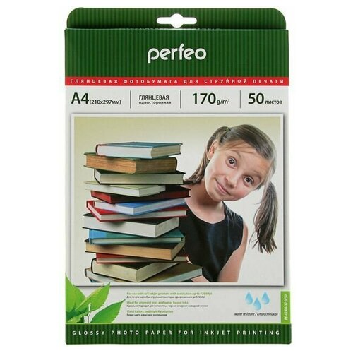 Фотобумага для струйной печати А4, 50 листов Perfeo, глянцевая, односторонняя, блок 170 г/м2, 1 набор