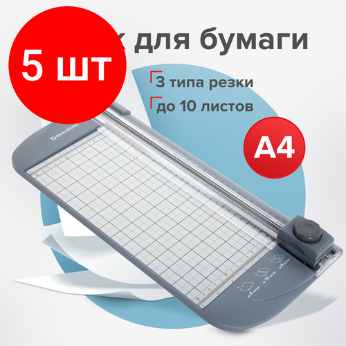 Комплект 5 шт, Резак роликовый BRAUBERG R5, на 5 л, длина реза 305 мм, 4 стиля резки, расклад. линейка, А4, 531117