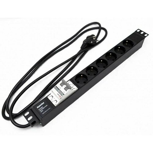 Блок розеток 6-м 16А SHE19-6SH-B-2.5EU 2п 250В 3х1.5кв. мм 482.6х44.4х44.4 для 19дюйм горизонт. с авт