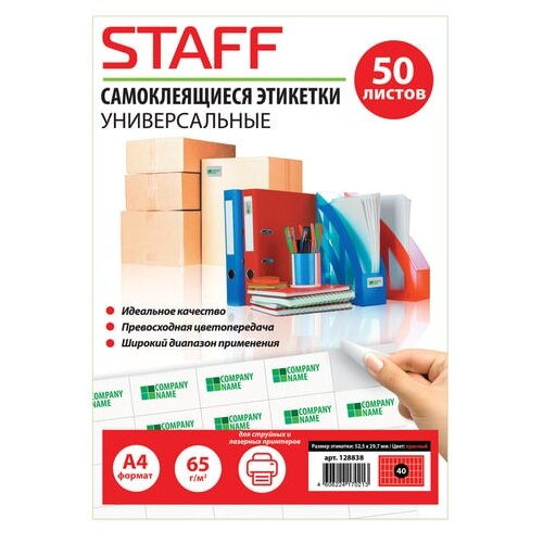 Бумага STAFF A4 128838/128839 65г/м², 50 л, 40 эт, неоновый красный