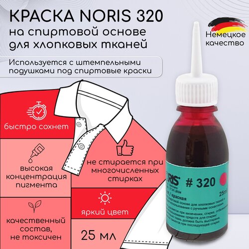 Красная краска Noris 320 на спиртовой основе для хлопковых тканей и полотна для использования с автоматическими оснастками.