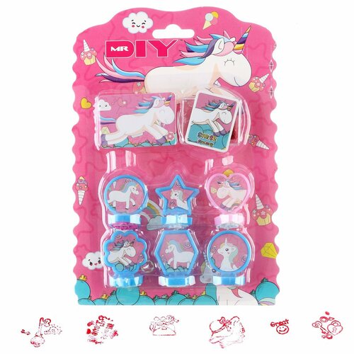 Печать цветная «Единороги», набор 6 шт, штемпельная подушка