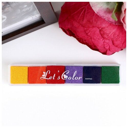 Штемпельная подушка КНР "Цветная" 1 подушка-6 цветов, 2,2х1,5х13,3 см