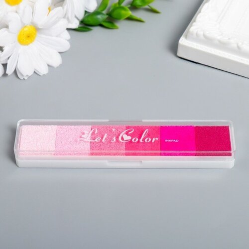 Штемпельная подушка КНР "Красно-розовая" палитра 6 цветов, 1,5х2,5х12,5 см (7450177)