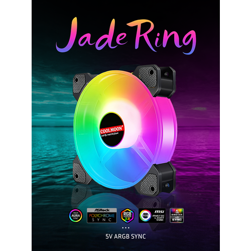 Вентилятор система охлаждения COOLMOON (кулер) с ARGB подсветкой D1 для корпуса ПК 120x120x25мм, контроллер, пульт управления, провод 50см, прозрачный