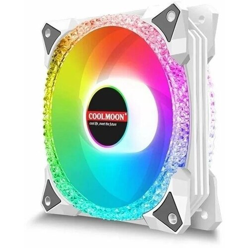 Вентилятор для охлаждения COOLMOON (кулер) с RGB подсветкой для корпуса ПК 120x120x25, контроллер, пульт управления, белый, комплект 2шт., 50см провод