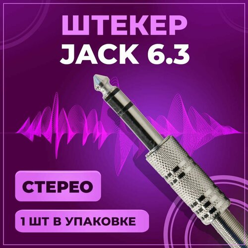 Штекер аудио Jack 6.3 мм, TRS стерео, под пайку, на провод, металл, 1 шт