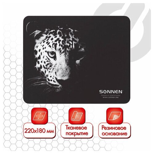 Коврик для мыши SONNEN "LEOPARD", резина + ткань, 220х180х3 мм, 513314 (цена за 1 ед. товара)