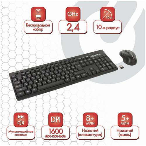 Набор беспроводной SONNEN K-648, клавиатура 117 клавиш, мышь 4 кнопки 1600 dpi, 513208