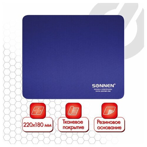 Коврик для мыши SONNEN "BLUE", резина + ткань, 220х180х3 мм, 513308 (цена за 1 ед. товара)